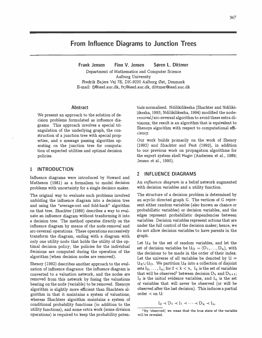 From Influence Diagrams to Junction Trees