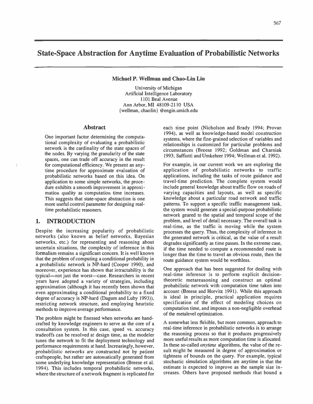 Conference on Uncertainty in Artificial Intelligence (UAI), 1994