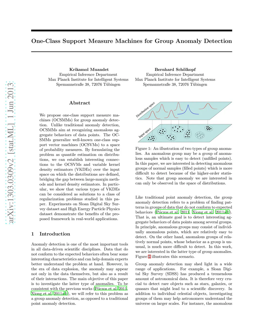 One-Class Support Measure Machines for Group Anomaly Detection