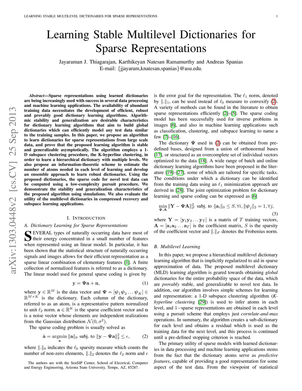 Learning Stable Multilevel Dictionaries for Sparse Representations