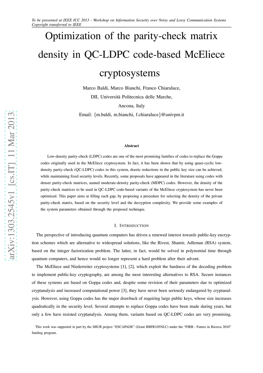 Optimization of the parity-check matrix density in QC-LDPC code-based