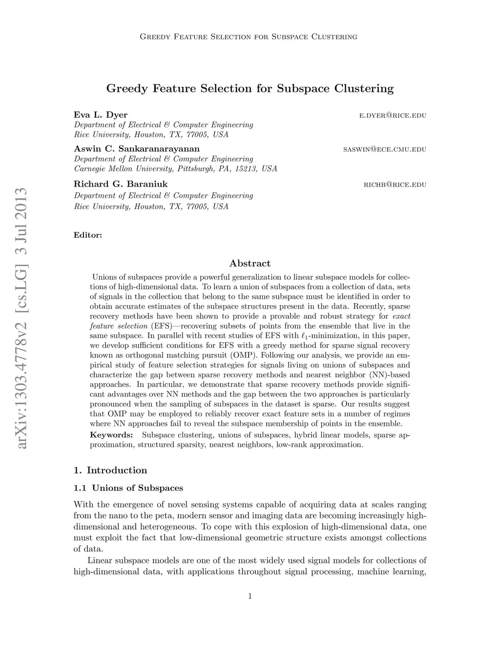 Greedy Feature Selection for Subspace Clustering