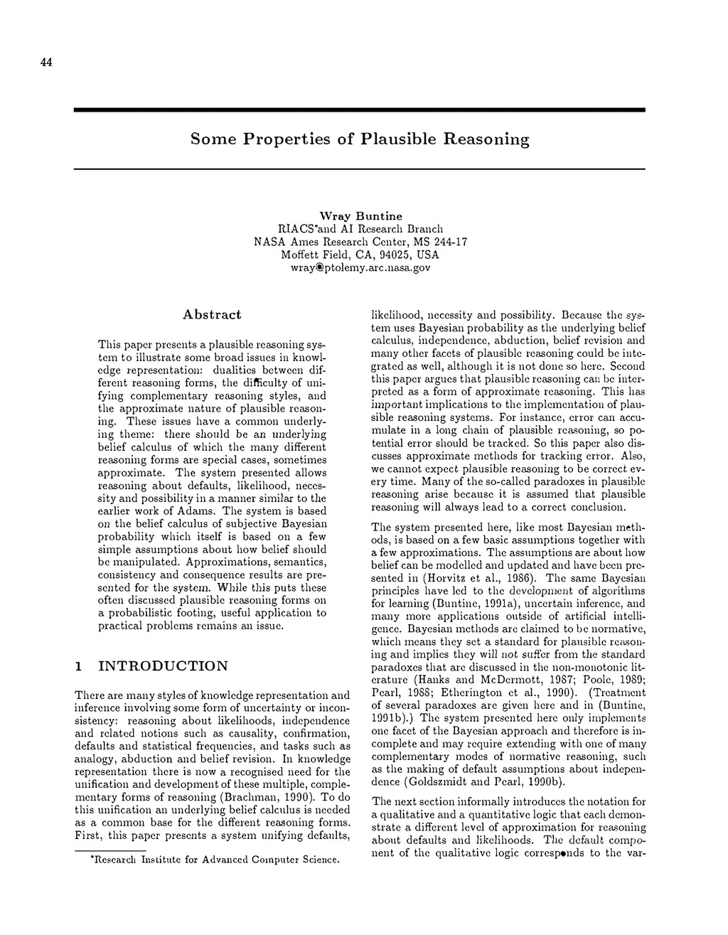 This paper presents a plausible reasoning system to illustrate some broad issues in knowledge representation: dualities between different reasoning forms, the difficulty of unifying complementary reasoning styles, and the approximate nature of plausible reasoning. These issues have a common underlying theme: there should be an underlying belief calculus of which the many different reasoning forms are special cases, sometimes approximate. The system presented allows reasoning about defaults, likelihood, necessity and possibility in a manner similar to the earlier work of Adams. The system is based on the belief calculus of subjective Bayesian probability which itself is based on a few simple assumptions about how belief should be manipulated. Approximations, semantics, consistency and consequence results are presented for the system. While this puts these often discussed plausible reasoning forms on a probabilistic footing, useful application to practical problems remains an issue.