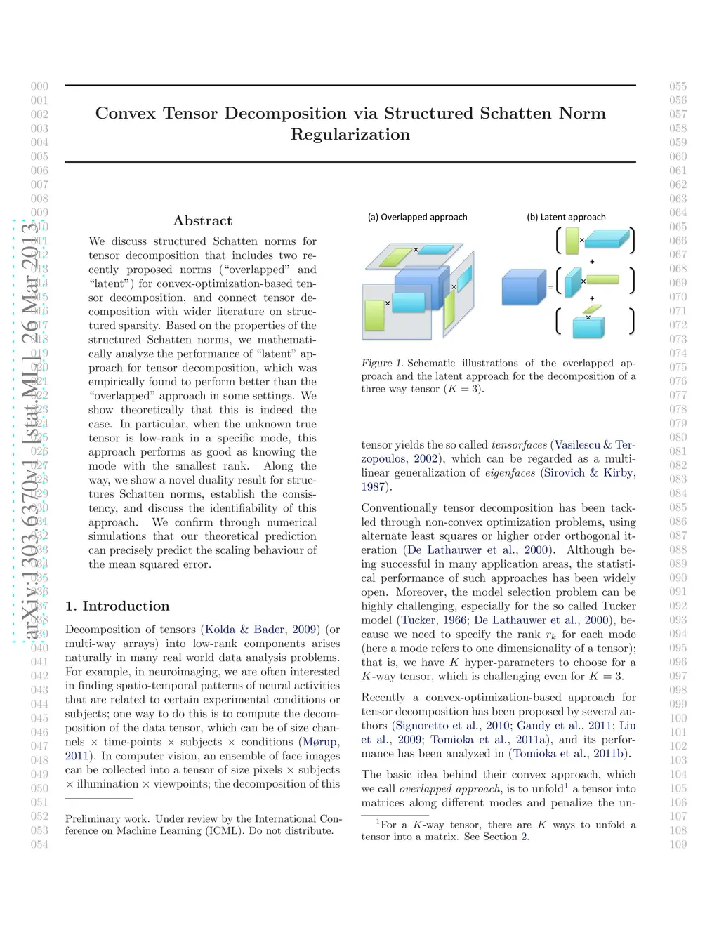 Convex Tensor Decomposition via Structured Schatten Norm Regularization