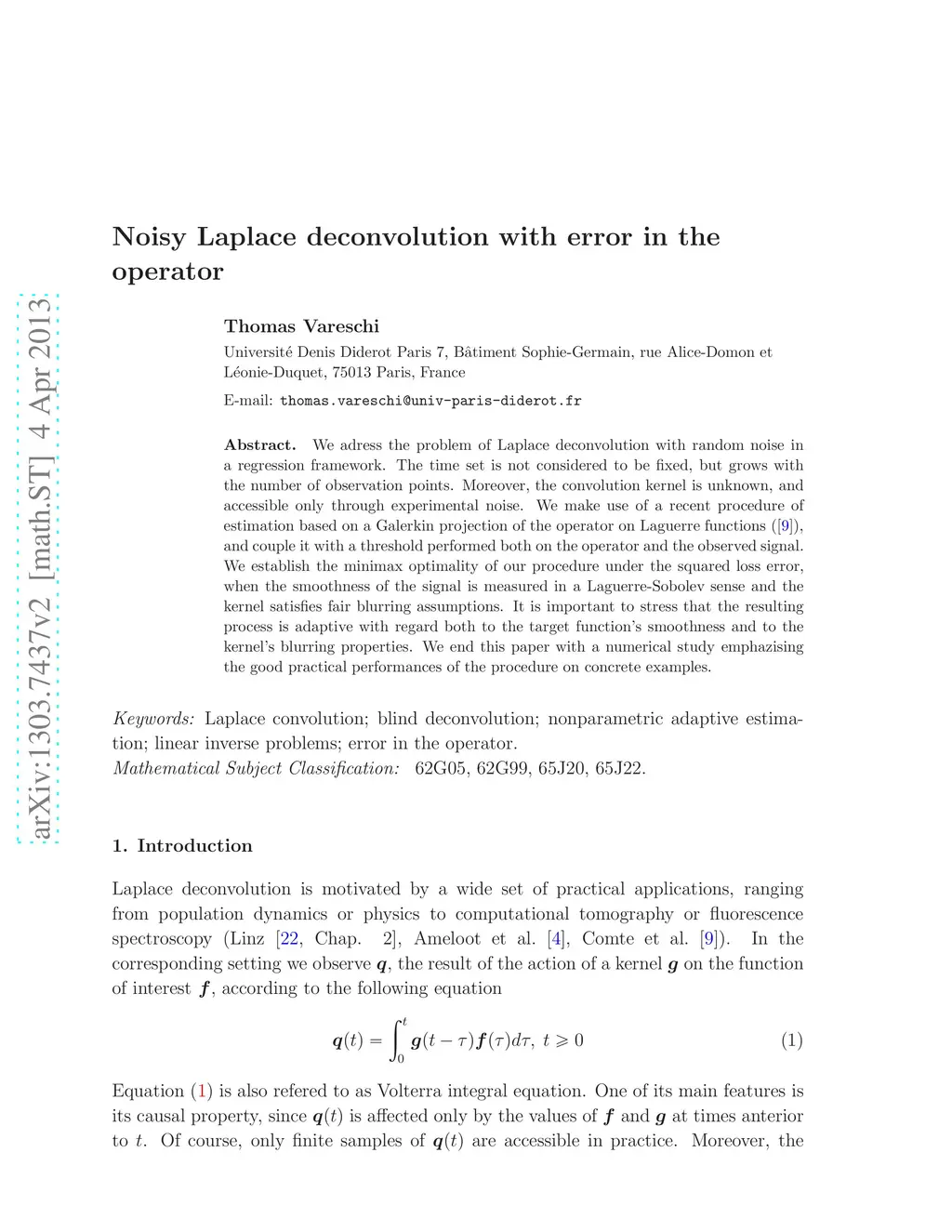 We adress the problem of Laplace deconvolution with random noise in a regression framework. The time set is not considered to be fixed, but grows with the number of observation points. Moreover, the convolution kernel is unknown, and accessible only through experimental noise. We make use of a recent procedure of estimation which couples a Galerkin projection of the operator on Laguerre functions, with a threshold performed both on the operator and the observed signal. We establish the minimax optimality of our procedure under the squared loss error, when the smoothness of the signal is measured in a Laguerre-Sobolev sense and the kernel satisfies fair blurring assumptions. It is important to stress that the resulting process is adaptive with regard both to the target function's smoothness and to the kernel's blurring properties. We end this paper with a numerical study emphazising the good practical performances of the procedure on concrete examples.
