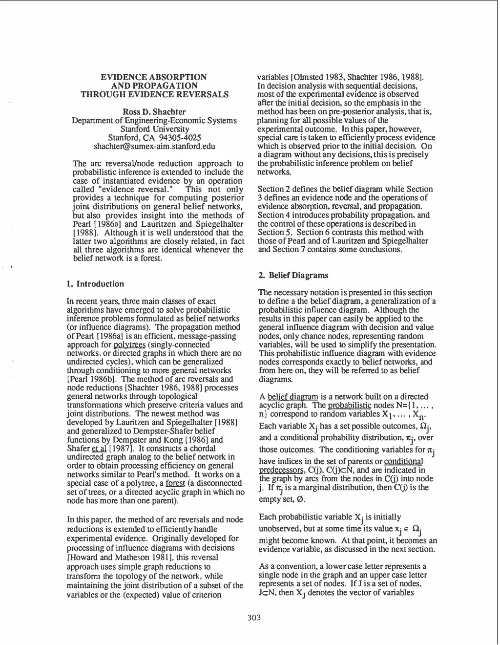The arc reversal/node reduction approach to probabilistic inference is extended to include the case of instantiated evidence by an operation called "evidence reversal." This not only provides a technique for computing posterior joint distributions on general belief networks, but also provides insight into the methods of Pearl [1986b] and Lauritzen and Spiegelhalter [1988]. Although it is well understood that the latter two algorithms are closely related, in fact all three algorithms are identical whenever the belief network is a forest.