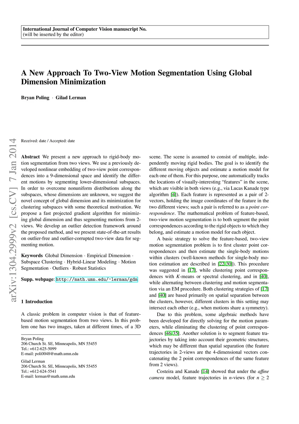 A New Approach To Two-View Motion Segmentation Using Global Dimension