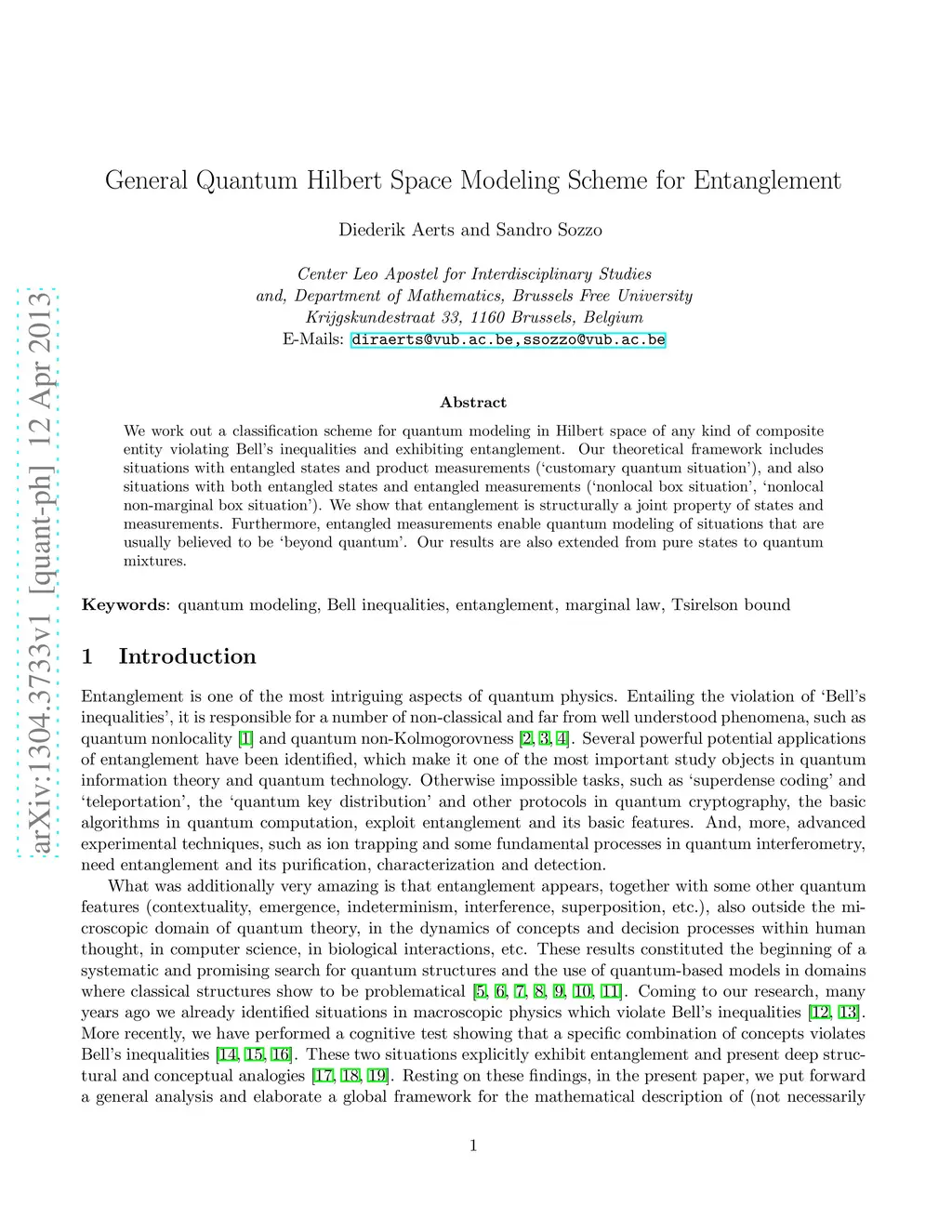General Quantum Hilbert Space Modeling Scheme for Entanglement