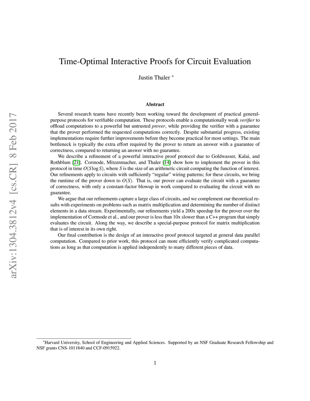 Time-Optimal Interactive Proofs for Circuit Evaluation