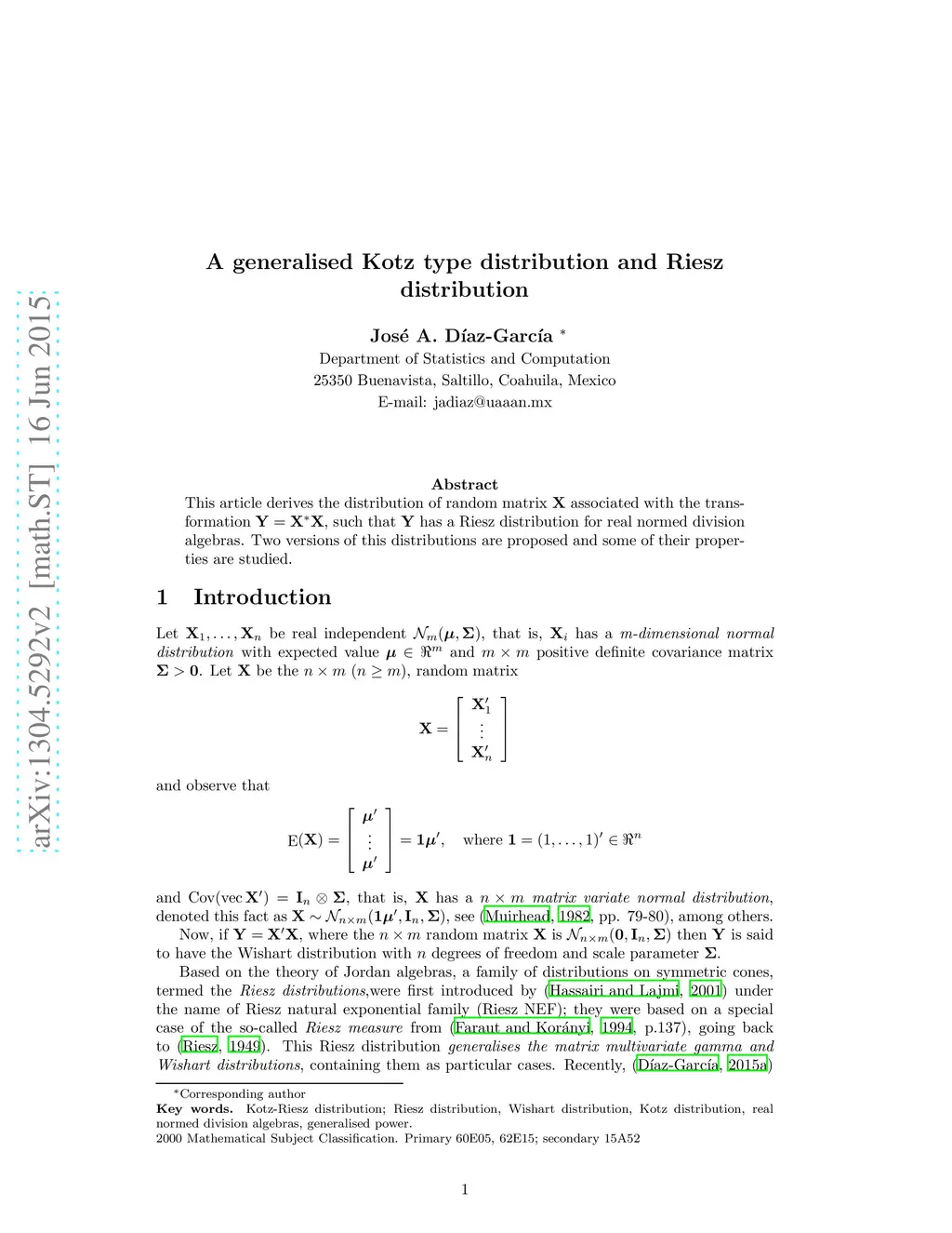 A generalised Kotz type distribution and Riesz distribution
