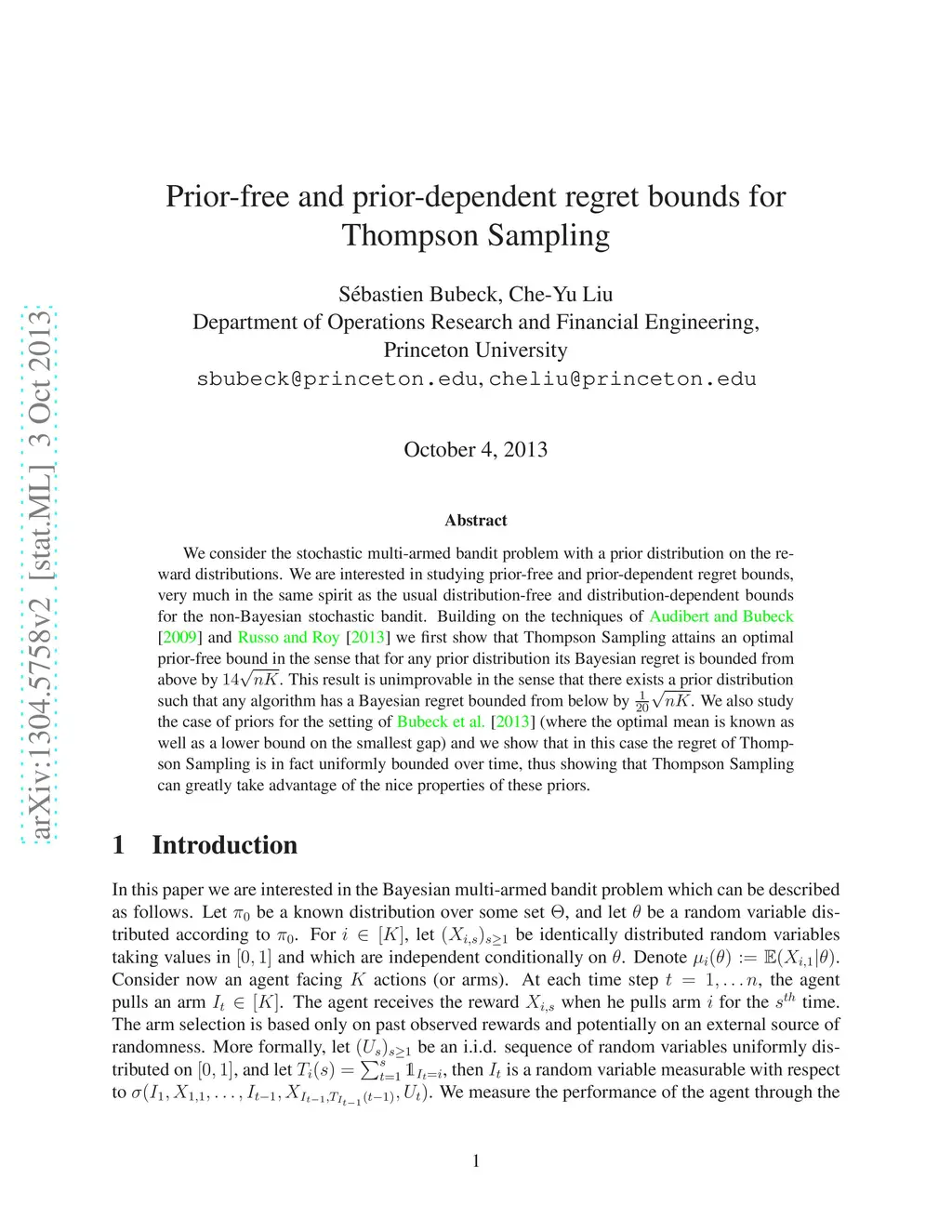 Prior-free and prior-dependent regret bounds for Thompson Sampling