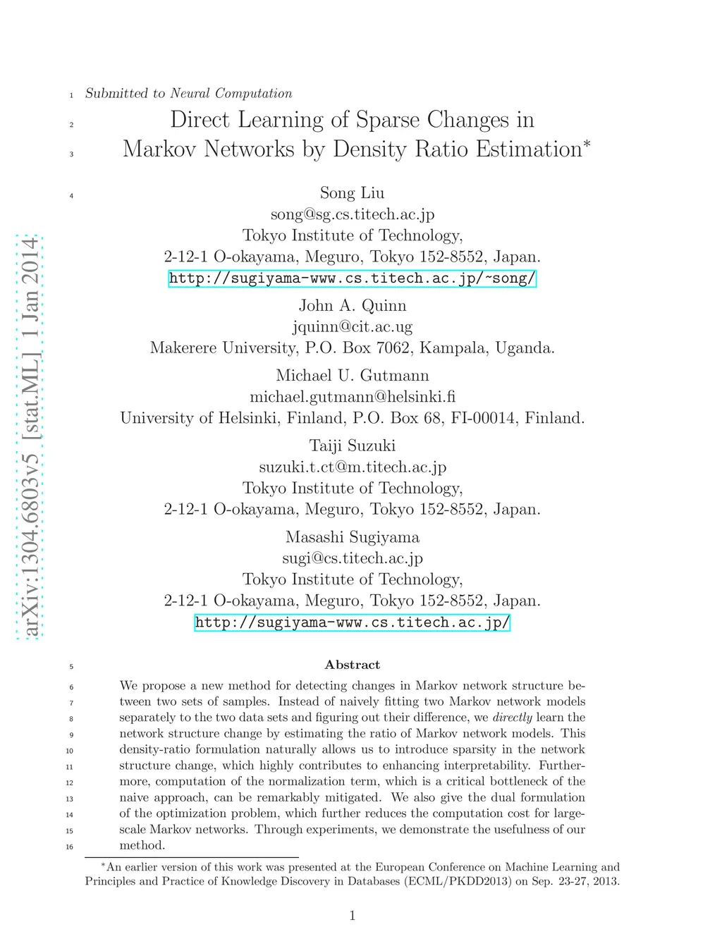 Direct Learning of Sparse Changes in Markov Networks by Density Ratio