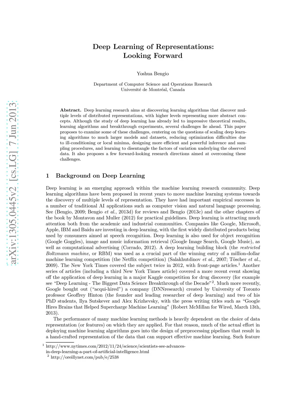 Deep Learning of Representations: Looking Forward