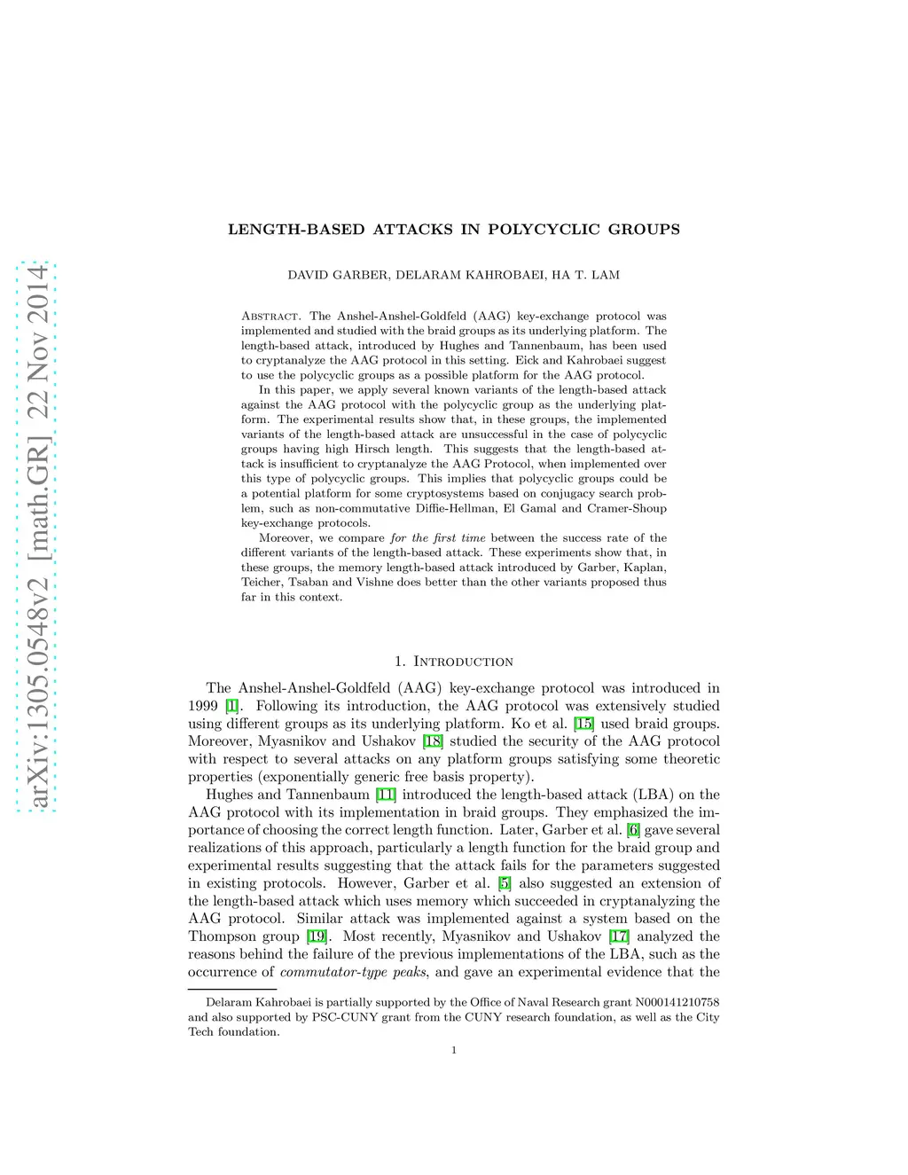 After the Anshel-Anshel-Goldfeld (AAG) key-exchange protocol was introduced in 1999, it was implemented and studied with braid groups and with the Thompson group as its underlying platforms. The length-based attack, introduced by Hughes and Tannenbaum, has been used to extensively study AAG with the braid group as the underlying platform. Meanwhile, a new platform, using polycyclic groups, was proposed by Eick and Kahrobaei. In this paper, we show that with a high enough Hirsch length, the polycyclic group as an underlying platform for AAG is resistant to the length-based attack. In particular, polycyclic groups could provide a secure platform for any cryptosystem based on conjugacy search problem such as non-commutative Diffie-Hellman, ElGamal and Cramer-Shoup key exchange protocols.