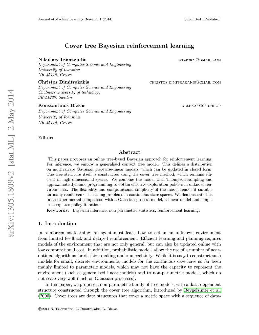 This paper proposes an online tree-based Bayesian approach for reinforcement learning. For inference, we employ a generalised context tree model. This defines a distribution on multivariate Gaussian piecewise-linear models, which can be updated in closed form. The tree structure itself is constructed using the cover tree method, which remains efficient in high dimensional spaces. We combine the model with Thompson sampling and approximate dynamic programming to obtain effective exploration policies in unknown environments. The flexibility and computational simplicity of the model render it suitable for many reinforcement learning problems in continuous state spaces. We demonstrate this in an experimental comparison with least squares policy iteration.