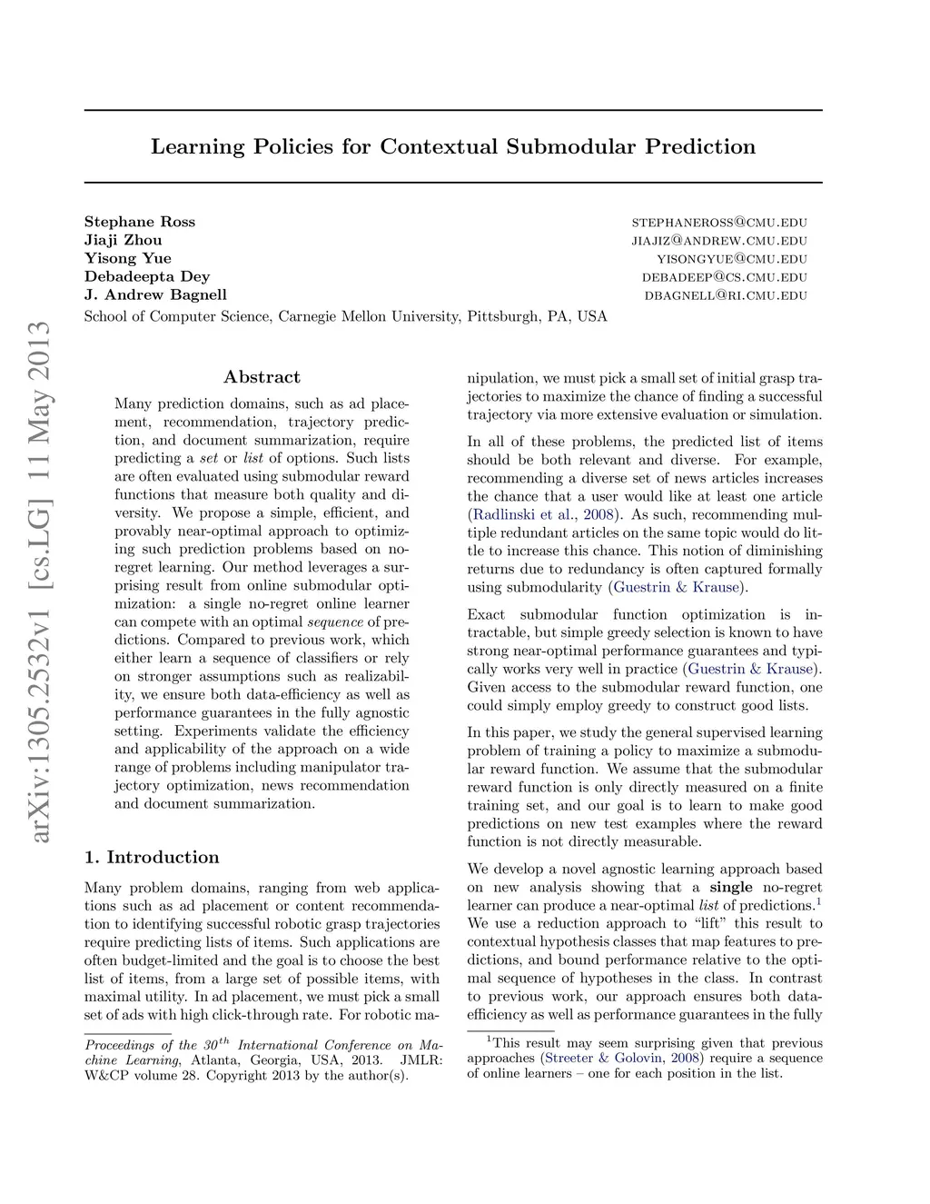 Many prediction domains, such as ad placement, recommendation, trajectory prediction, and document summarization, require predicting a set or list of options. Such lists are often evaluated using submodular reward functions that measure both quality and diversity. We propose a simple, efficient, and provably near-optimal approach to optimizing such prediction problems based on no-regret learning. Our method leverages a surprising result from online submodular optimization: a single no-regret online learner can compete with an optimal sequence of predictions. Compared to previous work, which either learn a sequence of classifiers or rely on stronger assumptions such as realizability, we ensure both data-efficiency as well as performance guarantees in the fully agnostic setting. Experiments validate the efficiency and applicability of the approach on a wide range of problems including manipulator trajectory optimization, news recommendation and document summarization.