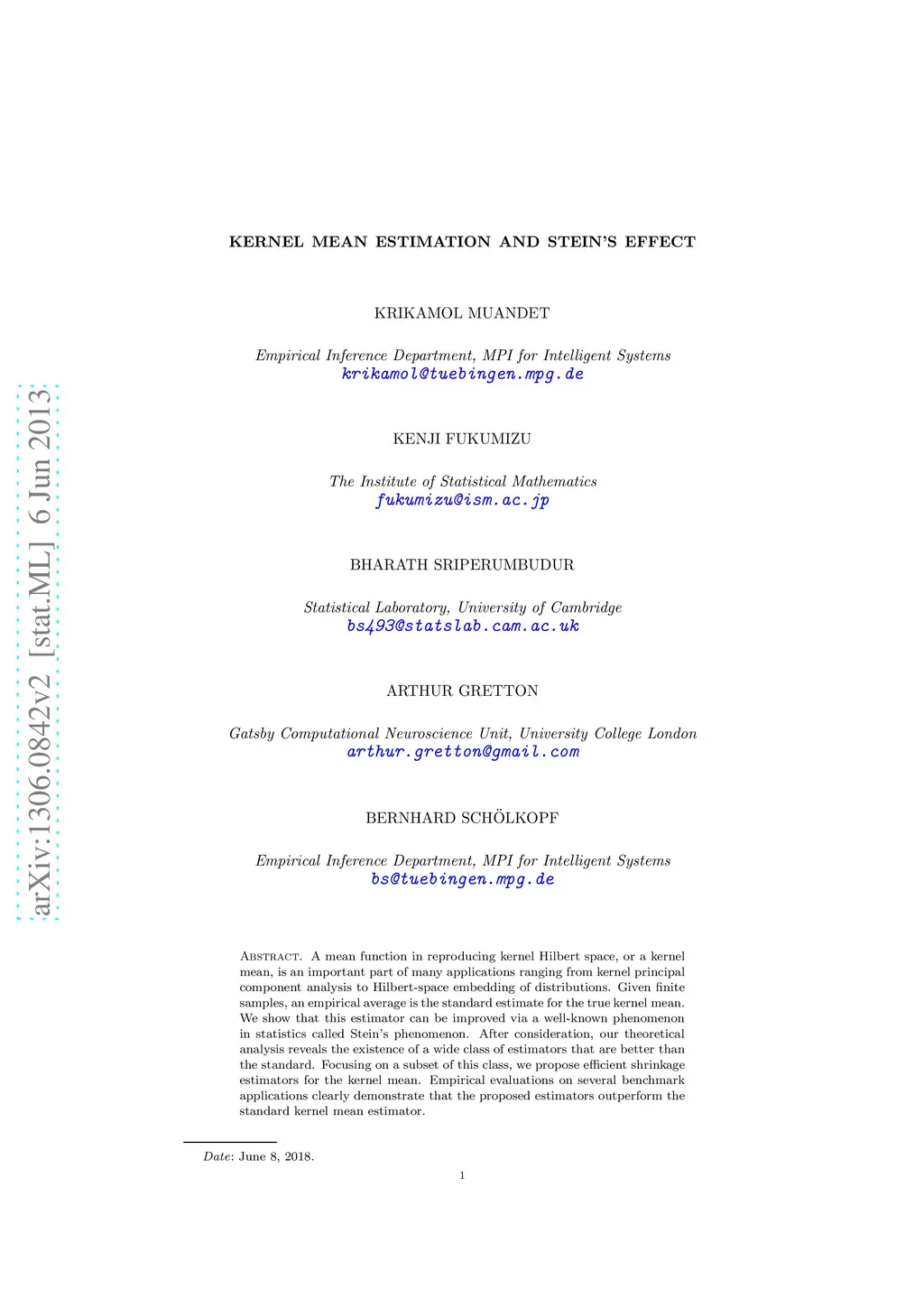 A mean function in reproducing kernel Hilbert space, or a kernel mean, is an important part of many applications ranging from kernel principal component analysis to Hilbert-space embedding of distributions. Given finite samples, an empirical average is the standard estimate for the true kernel mean. We show that this estimator can be improved via a well-known phenomenon in statistics called Stein's phenomenon. After consideration, our theoretical analysis reveals the existence of a wide class of estimators that are better than the standard. Focusing on a subset of this class, we propose efficient shrinkage estimators for the kernel mean. Empirical evaluations on several benchmark applications clearly demonstrate that the proposed estimators outperform the standard kernel mean estimator.