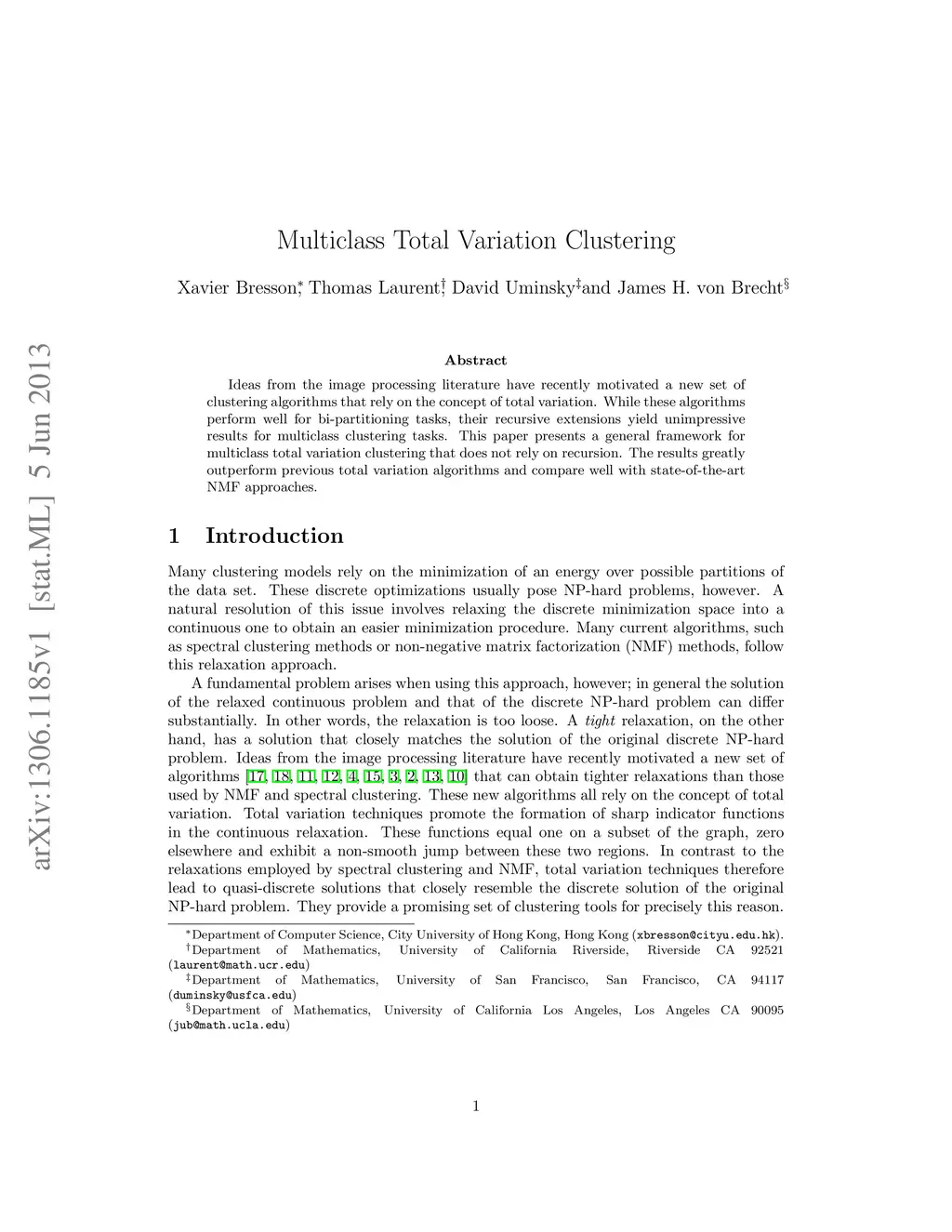 Ideas from the image processing literature have recently motivated a new set of clustering algorithms that rely on the concept of total variation. While these algorithms perform well for bi-partitioning tasks, their recursive extensions yield unimpressive results for multiclass clustering tasks. This paper presents a general framework for multiclass total variation clustering that does not rely on recursion. The results greatly outperform previous total variation algorithms and compare well with state-of-the-art NMF approaches.