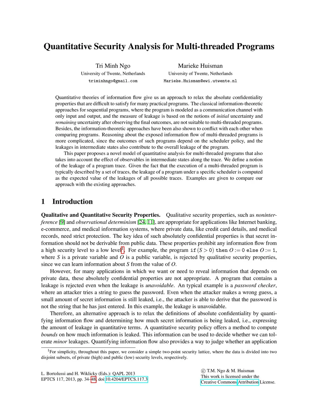 Quantitative theories of information flow give us an approach to relax the absolute confidentiality properties that are difficult to satisfy for many practical programs. The classical information-theoretic approaches for sequential programs, where the program is modeled as a communication channel with only input and output, and the measure of leakage is based on the notions of initial uncertainty and remaining uncertainty after observing the final outcomes, are not suitable to multi-threaded programs. Besides, the information-theoretic approaches have been also shown to conflict with each other when comparing programs. Reasoning about the exposed information flow of multi-threaded programs is more complicated, since the outcomes of such programs depend on the scheduler policy, and the leakages in intermediate states also contribute to the overall leakage of the program. This paper proposes a novel model of quantitative analysis for multi-threaded programs that also takes into account the effect of observables in intermediate states along the trace. We define a notion of the leakage of a program trace. Given the fact that the execution of a multi-threaded program is typically described by a set of traces, the leakage of a program under a specific scheduler is computed as the expected value of the leakages of all possible traces. Examples are given to compare our approach with the existing approaches.