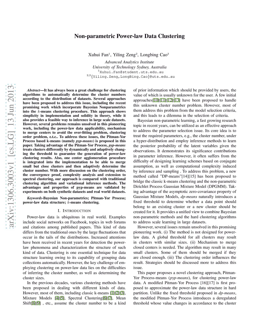 It has always been a great challenge for clustering algorithms to automatically determine the cluster numbers according to the distribution of datasets. Several approaches have been proposed to address this issue, including the recent promising work which incorporate Bayesian Nonparametrics into the -means clustering procedure. This approach shows simplicity in implementation and solidity in theory, while it also provides a feasible way to inference in large scale datasets. However, several problems remains unsolved in this pioneering work, including the power-law data applicability, mechanism to merge centers to avoid the over-fitting problem, clustering order problem, e.t.c.. To address these issues, the Pitman-Yor Process based k-means (namely \emph{pyp-means}) is proposed in this paper. Taking advantage of the Pitman-Yor Process, \emph{pyp-means} treats clusters differently by dynamically and adaptively changing the threshold to guarantee the generation of power-law clustering results. Also, one center agglomeration procedure is integrated into the implementation to be able to merge small but close clusters and then adaptively determine the cluster number. With more discussion on the clustering order, the convergence proof, complexity analysis and extension to spectral clustering, our approach is compared with traditional clustering algorithm and variational inference methods. The advantages and properties of pyp-means are validated by experiments on both synthetic datasets and real world datasets.
