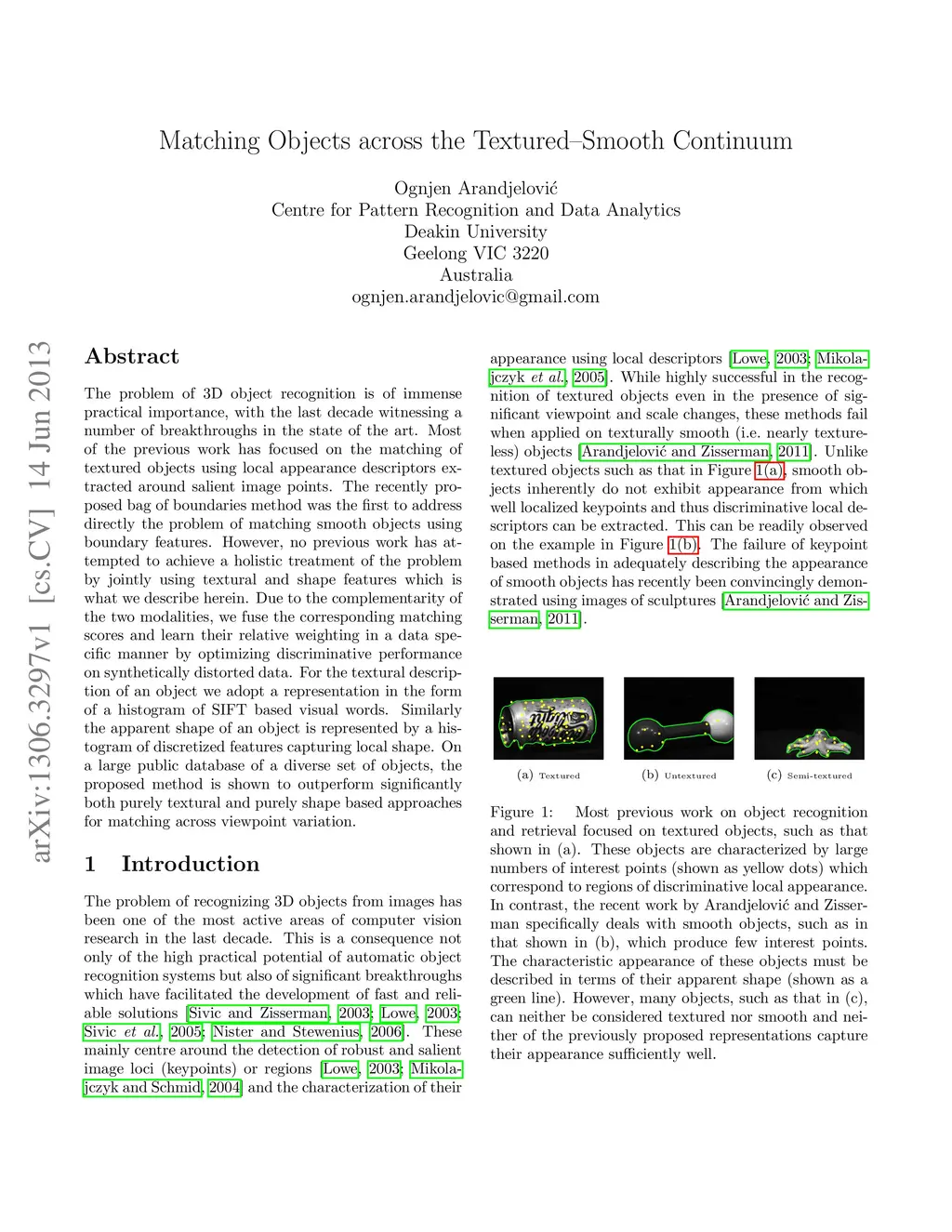 Matching objects across the textured-smooth continuum