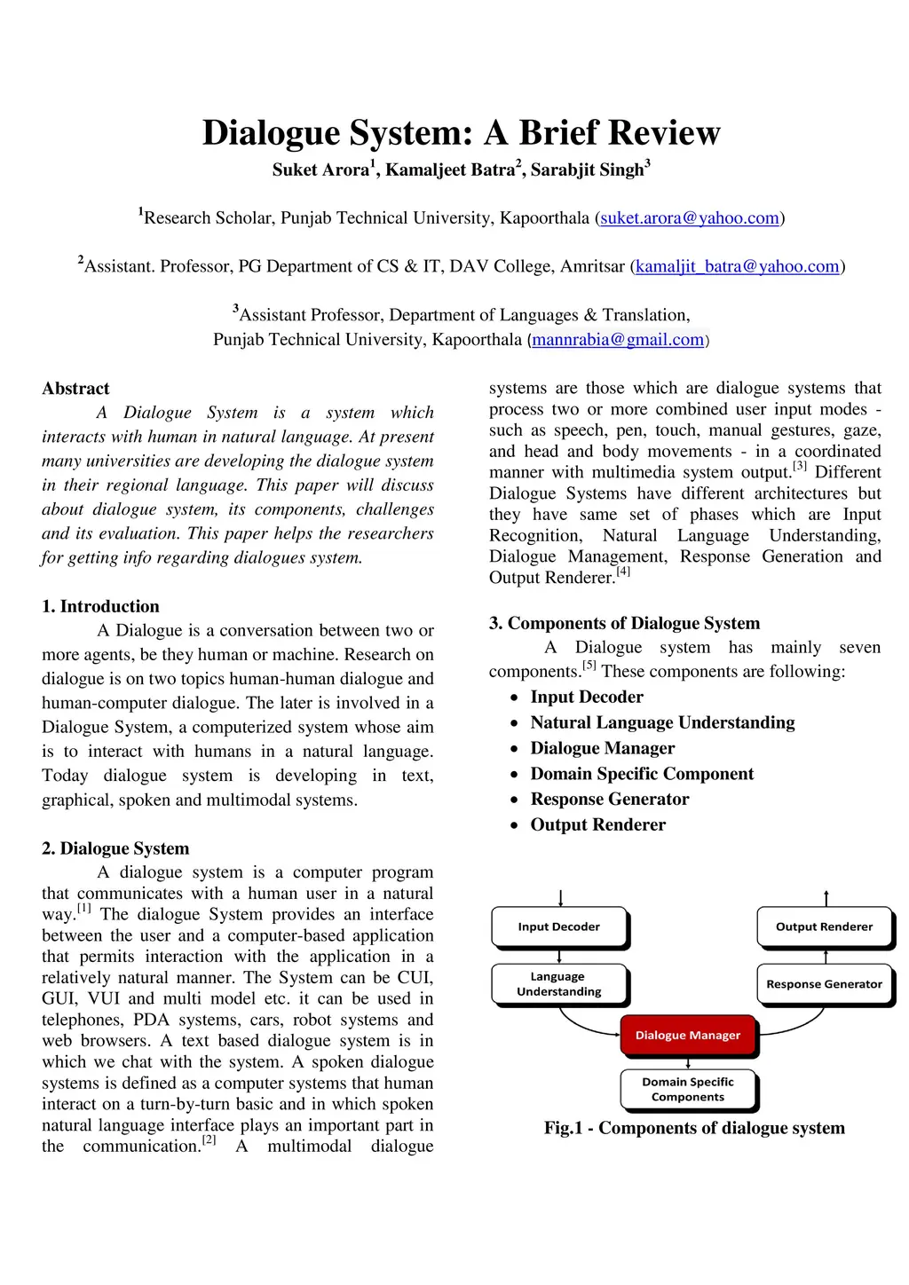 Dialogue System: A Brief Review