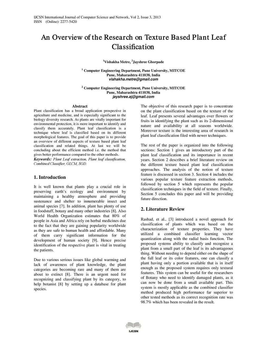 An Overview of the Research on Texture Based Plant Leaf Classification