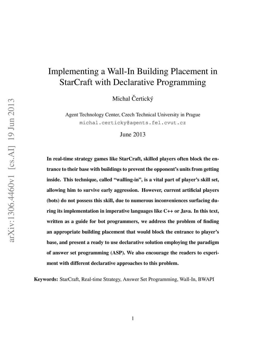 Implementing a Wall-In Building Placement in StarCraft with Declarative