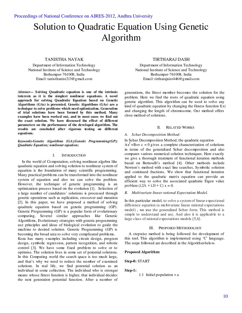 Solution to Quadratic Equation Using Genetic Algorithm