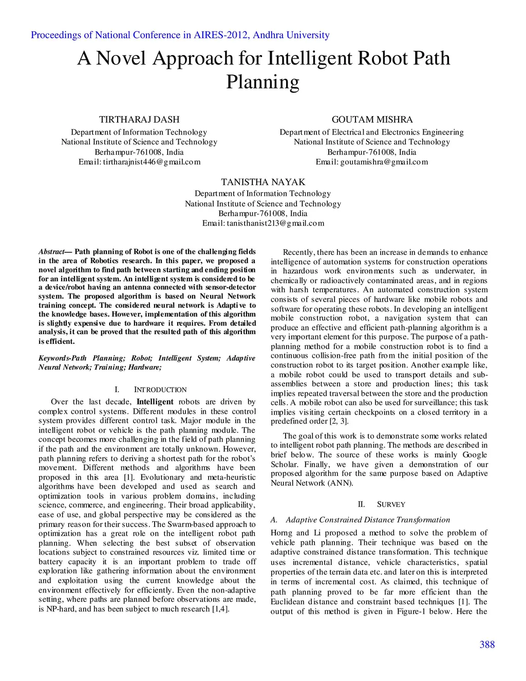 A Novel Approach for Intelligent Robot Path Planning