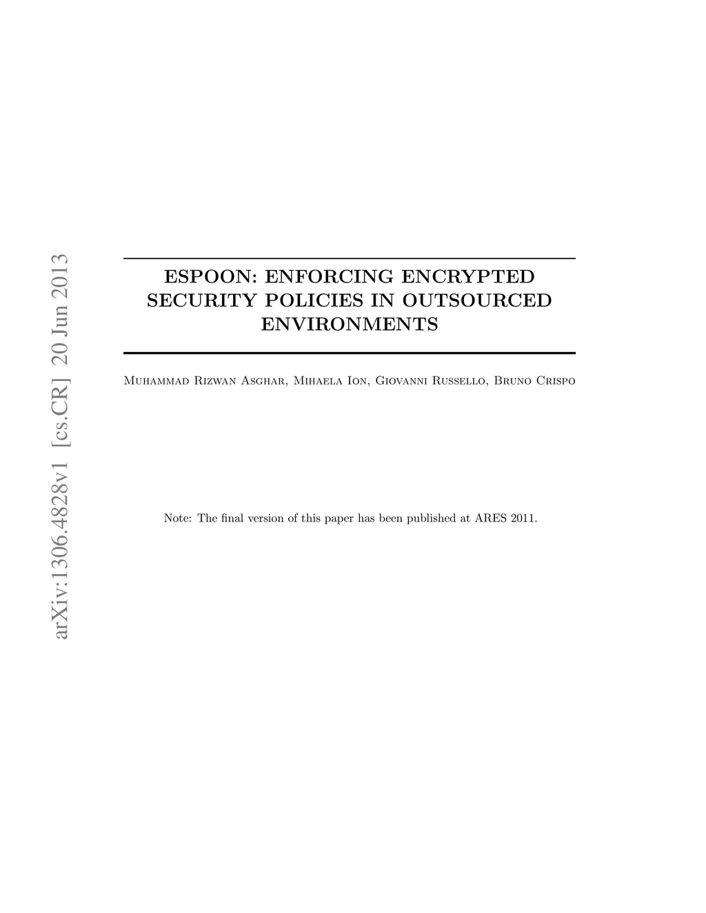 ESPOON: Enforcing Encrypted Security Policies in Outsourced Environments