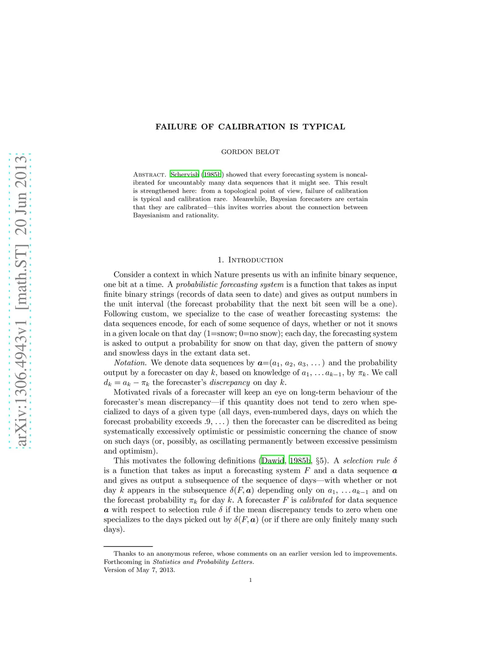 Schervish (1985b) showed that every forecasting system is noncalibrated for uncountably many data sequences that it might see. This result is strengthened here: from a topological point of view, failure of calibration is typical and calibration rare. Meanwhile, Bayesian forecasters are certain that they are calibrated---this invites worries about the connection between Bayesianism and rationality.