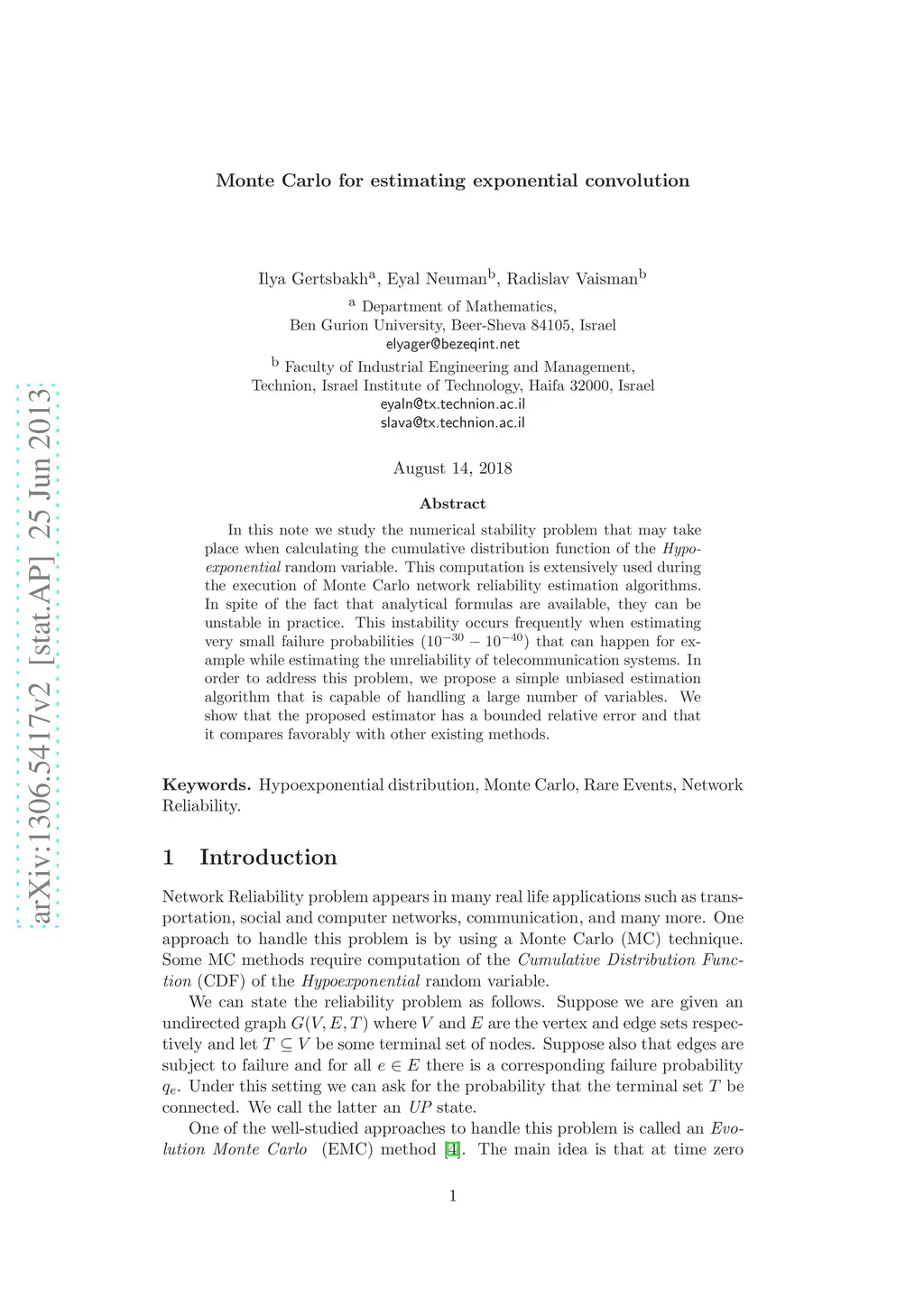 In this note we study the numerical stability problem that may take place when calculating the cumulative distribution function of the {\it Hypoexponential} random variable. This computation is extensively used during the execution of Monte Carlo network reliability estimation algorithms. In spite of the fact that analytical formulas are available, they can be unstable in practice. This instability occurs frequently when estimating very small failure probabilities that can happen for example while estimating the unreliability of telecommunication systems. In order to address this problem, we propose a simple unbiased estimation algorithm that is capable of handling a large number of variables. We show that the proposed estimator has a bounded relative error and that it compares favorably with other existing methods.