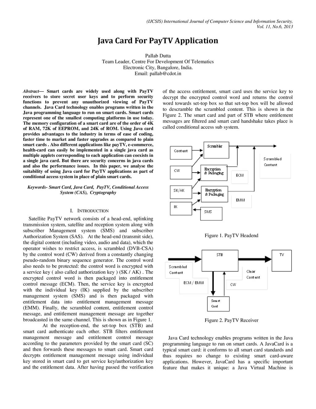 Smart cards are widely used along with PayTV receivers to store secret user keys and to perform security functions to prevent any unauthorized viewing of PayTV channels. Java Card technology enables programs written in the Java programming language to run on smart cards. Smart cards represent one of the smallest computing platforms in use today. The memory configuration of a smart card are of the order of 4K of RAM, 72K of EEPROM, and 24K of ROM. Using Java card provides advantages to the industry in terms of ease of coding, faster time to market and faster upgrades as compared to plain smart cards . Also different applications like payTV, e-commerce, health-card can easily be implemented in a single java card as multiple applets corresponding to each application can coexists in a single java card. But there are security concerns in java cards and also the performance issues. In this paper, we analyse the suitability of using Java card for PayTV applications as part of conditional access system in place of plain smart cards.