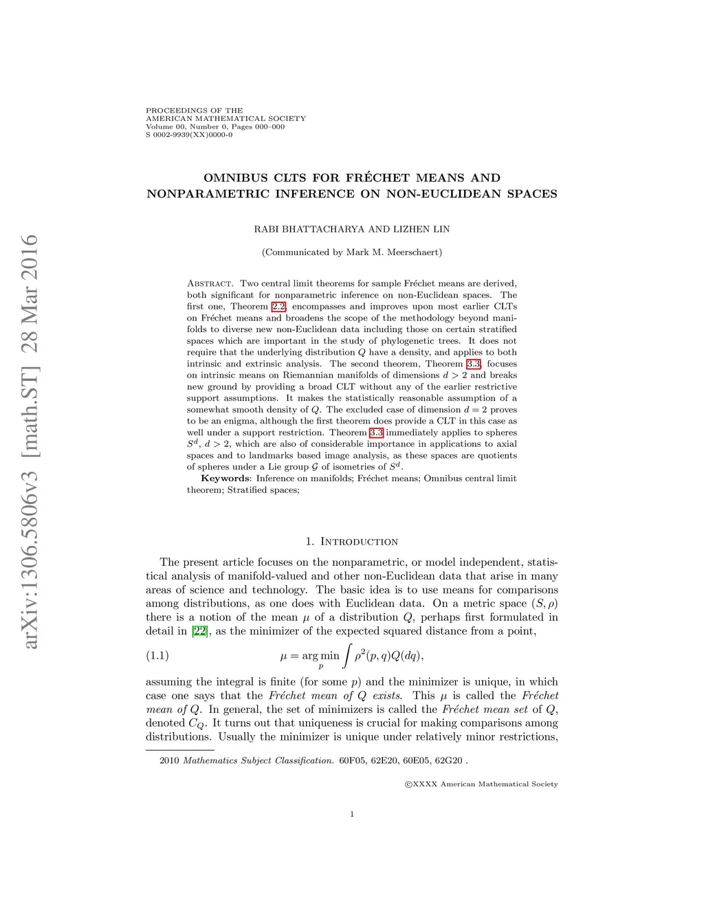 Two central limit theorems for sample Fr\échet means are derived, both significant for nonparametric inference on non-Euclidean spaces. The first one, Theorem 2.2, encompasses and improves upon most earlier CLTs on Fr\échet means and broadens the scope of the methodology beyond manifolds to diverse new non-Euclidean data including those on certain stratified spaces which are important in the study of phylogenetic trees. It does not require that the underlying distribution have a density, and applies to both intrinsic and extrinsic analysis. The second theorem, Theorem 3.3, focuses on intrinsic means on Riemannian manifolds of dimensions and breaks new ground by providing a broad CLT without any of the earlier restrictive support assumptions. It makes the statistically reasonable assumption of a somewhat smooth density of . The excluded case of dimension proves to be an enigma, although the first theorem does provide a CLT in this case as well under a support restriction. Theorem 3.3 immediately applies to spheres , , which are also of considerable importance in applications to axial spaces and to landmarks based image analysis, as these spaces are quotients of spheres under a Lie group $\mathcal G $ of isometries of .