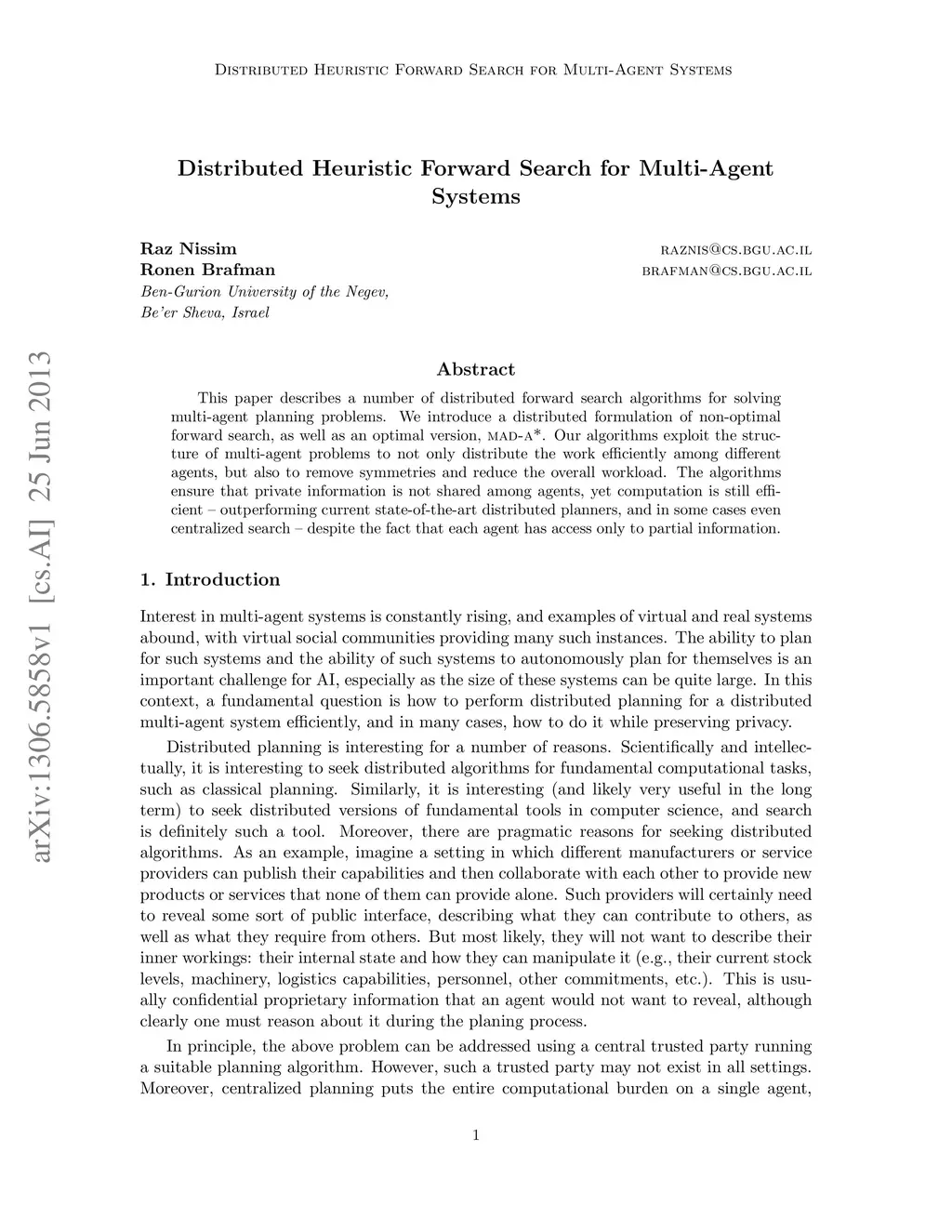 Distributed Heuristic Forward Search for Multi-Agent Systems