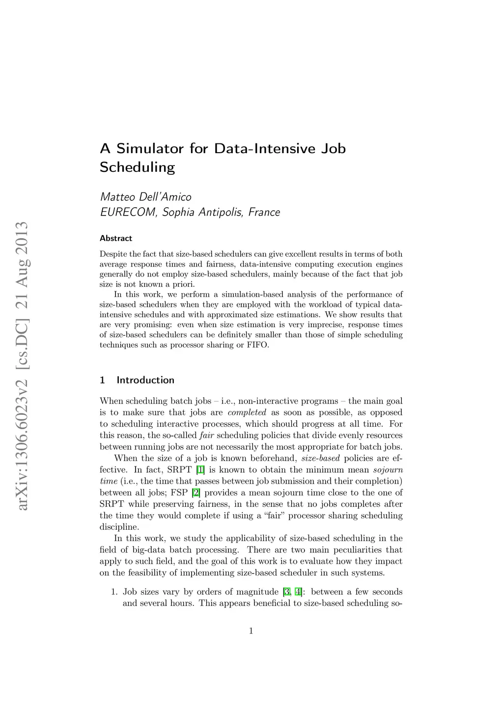 A Simulator for Data-Intensive Job Scheduling