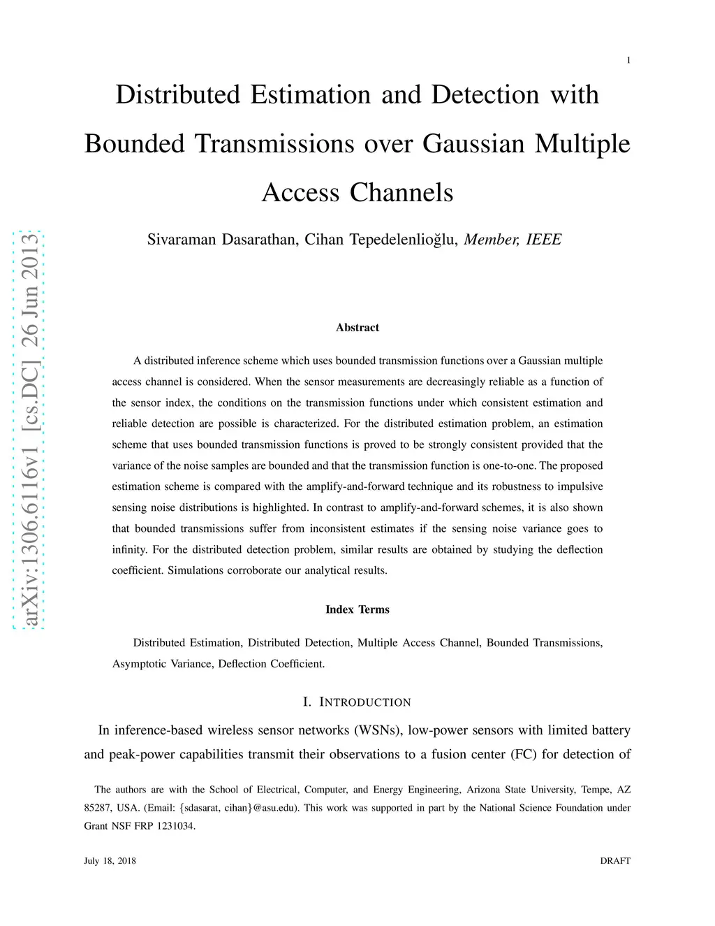 A distributed inference scheme which uses bounded transmission functions over a Gaussian multiple access channel is considered. When the sensor measurements are decreasingly reliable as a function of the sensor index, the conditions on the transmission functions under which consistent estimation and reliable detection are possible is characterized. For the distributed estimation problem, an estimation scheme that uses bounded transmission functions is proved to be strongly consistent provided that the variance of the noise samples are bounded and that the transmission function is one-to-one. The proposed estimation scheme is compared with the amplify-and-forward technique and its robustness to impulsive sensing noise distributions is highlighted. In contrast to amplify-and-forward schemes, it is also shown that bounded transmissions suffer from inconsistent estimates if the sensing noise variance goes to infinity. For the distributed detection problem, similar results are obtained by studying the deflection coefficient. Simulations corroborate our analytical results.