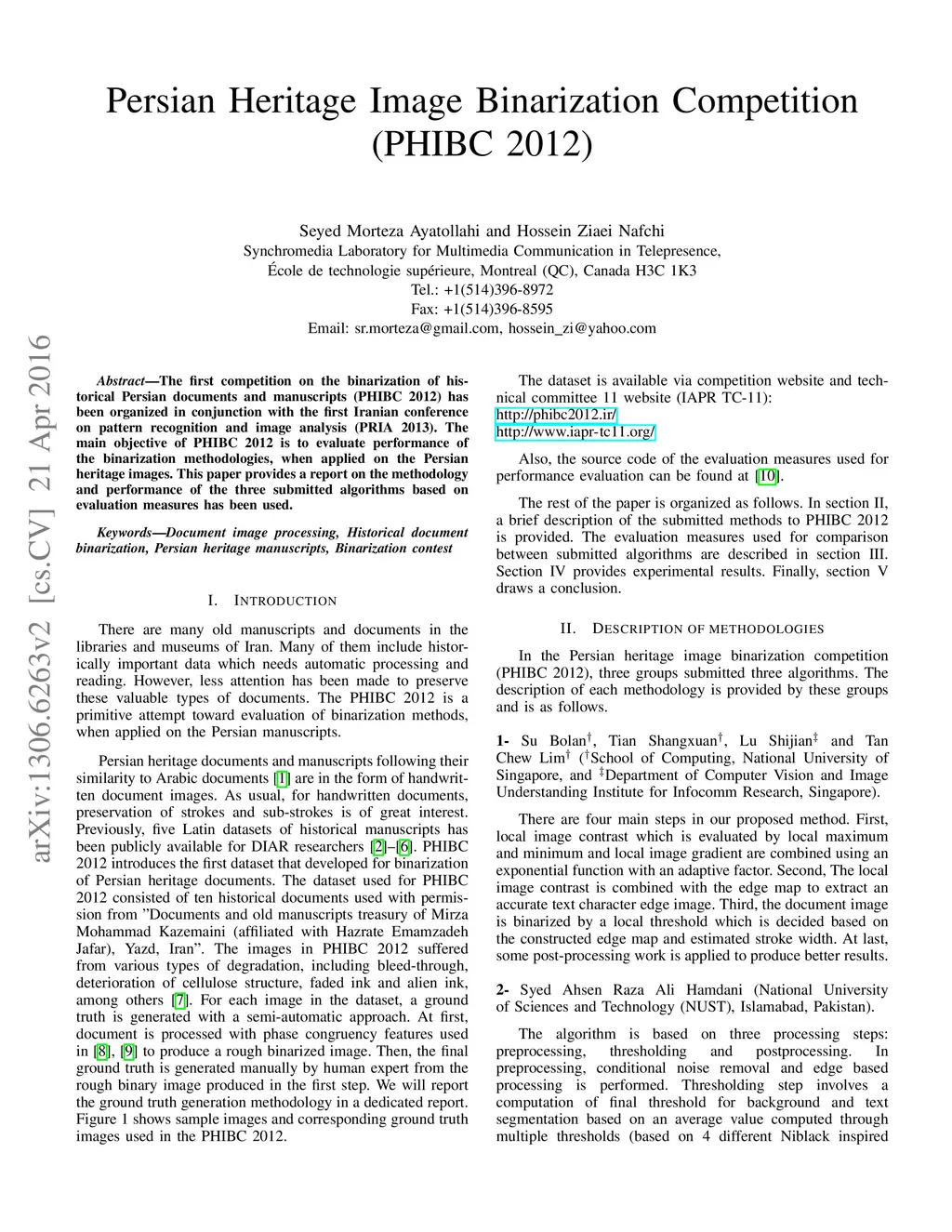 Persian Heritage Image Binarization Competition (PHIBC 2012)