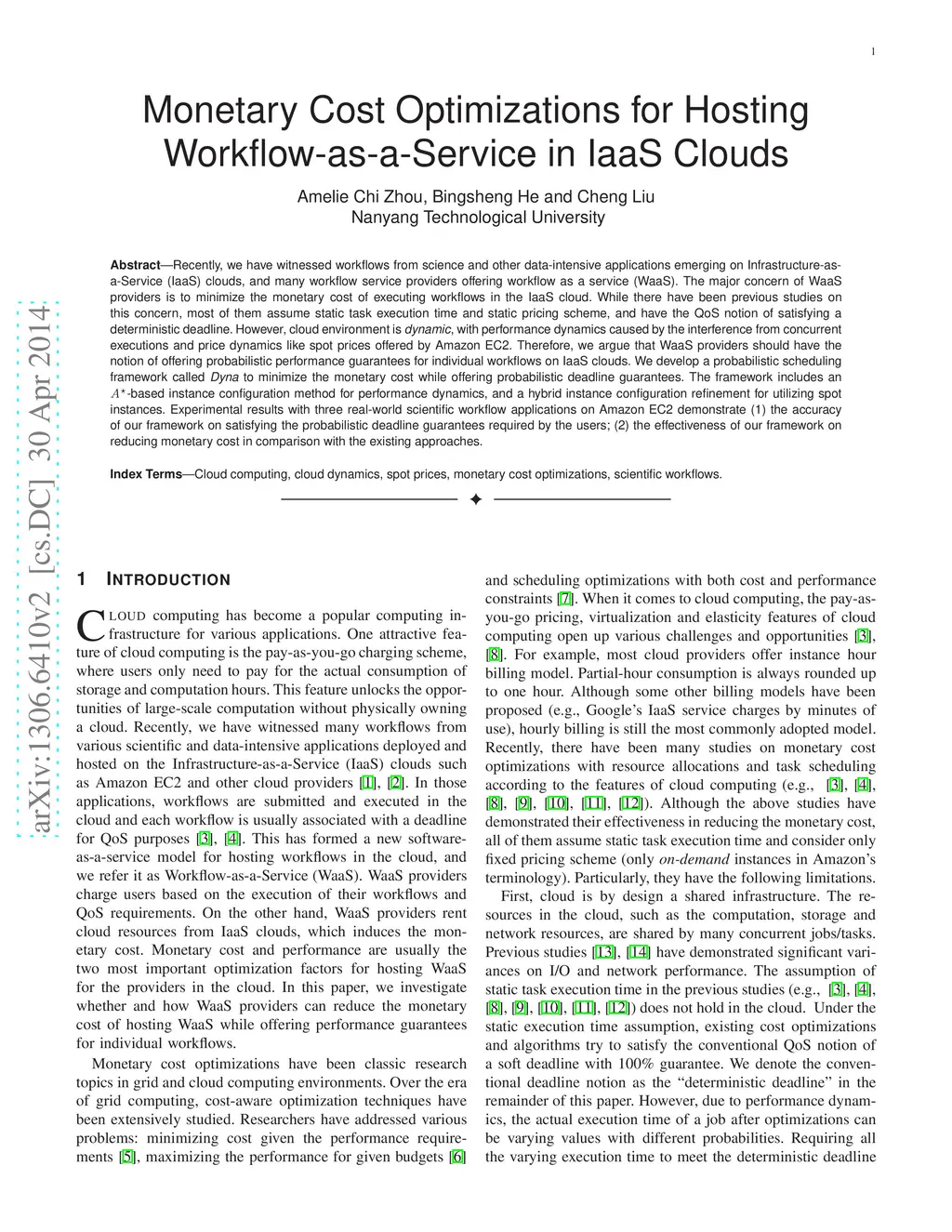 Monetary Cost Optimizations for Hosting Workflow-as-a-Service in IaaS