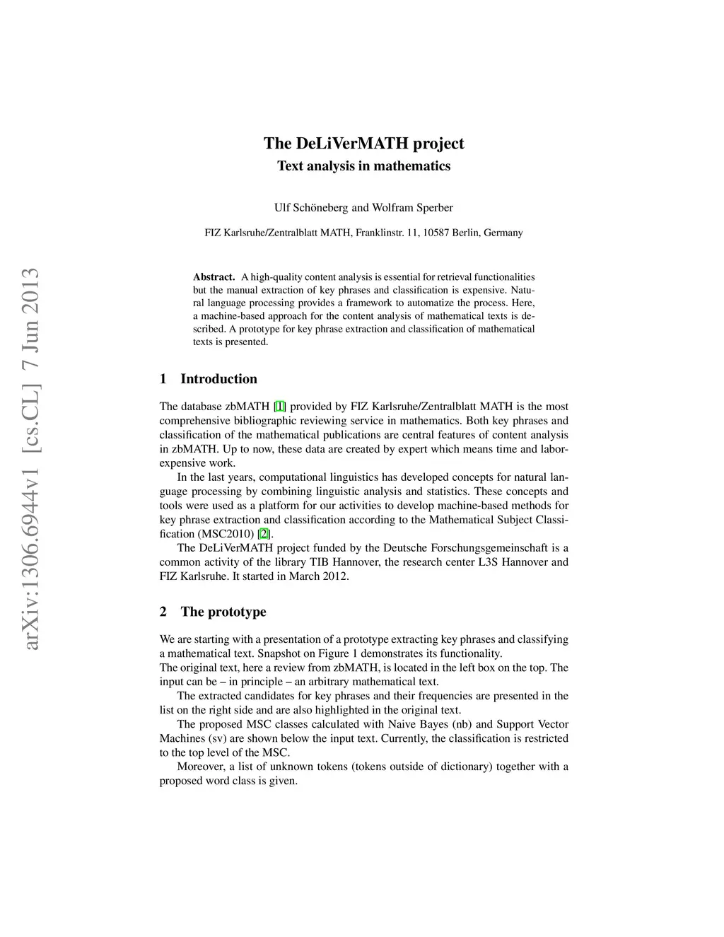 The DeLiVerMATH project - Text analysis in mathematics