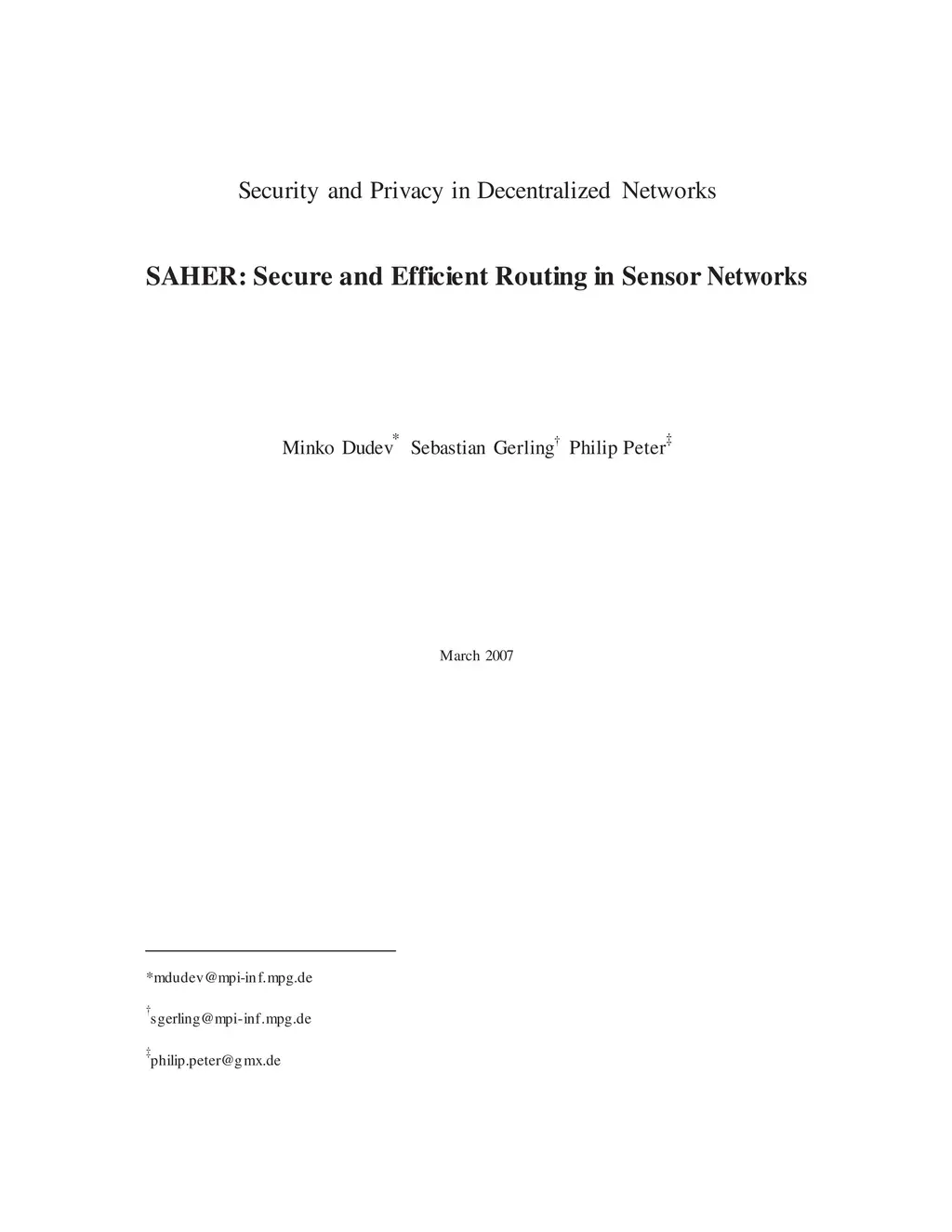 SAHER: Secure and Efficient Routing in Sensor Networks
