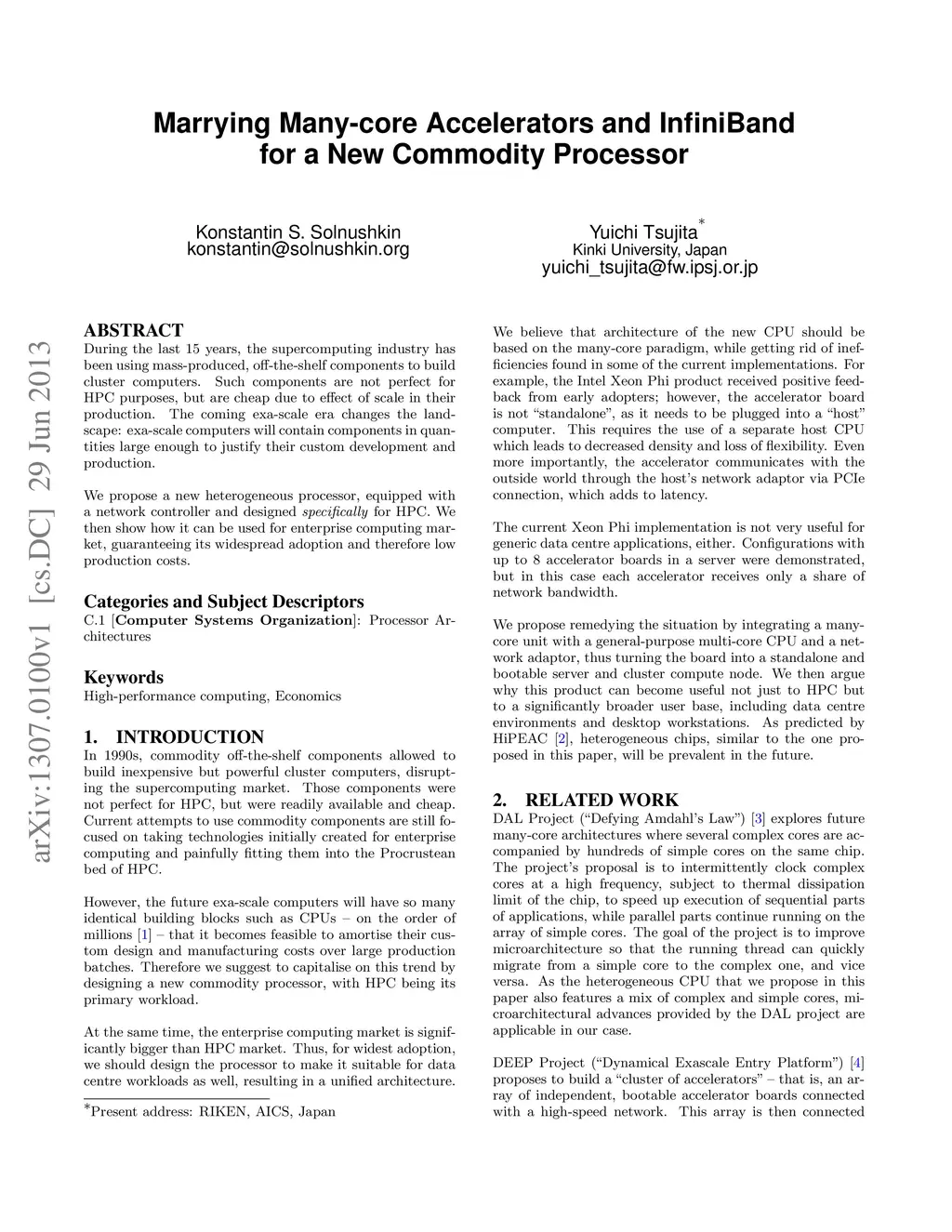 During the last 15 years, the supercomputing industry has been using mass-produced, off-the-shelf components to build cluster computers. Such components are not perfect for HPC purposes, but are cheap due to effect of scale in their production. The coming exa-scale era changes the landscape: exa-scale computers will contain components in quantities large enough to justify their custom development and production. We propose a new heterogeneous processor, equipped with a network controller and designed specifically for HPC. We then show how it can be used for enterprise computing market, guaranteeing its widespread adoption and therefore low production costs.