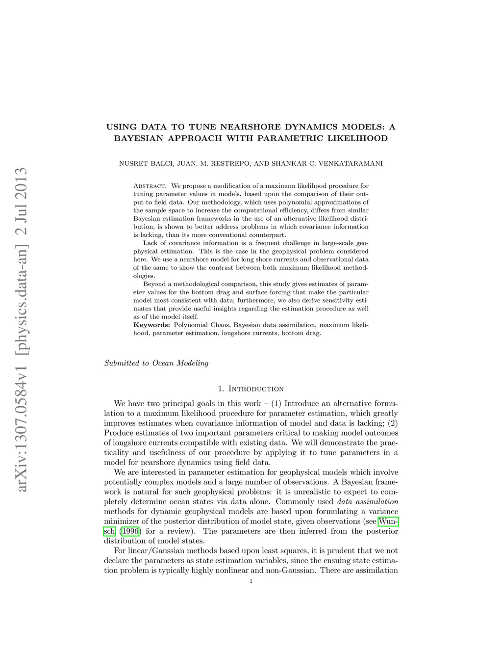 Using Data to Tune Nearshore Dynamics Models: A Bayesian Approach with
