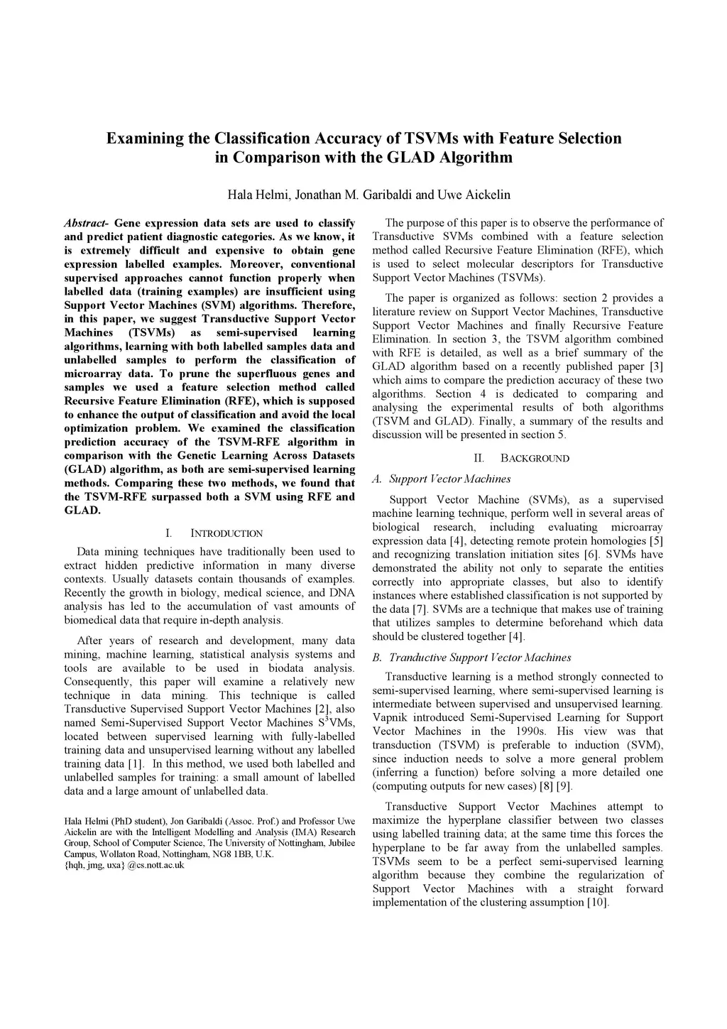 Examining the Classification Accuracy of TSVMs with ?Feature Selection