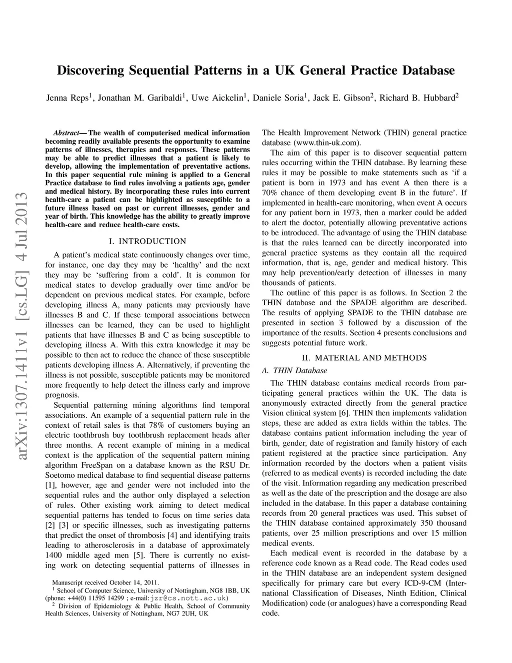 Discovering Sequential Patterns in a UK General Practice Database