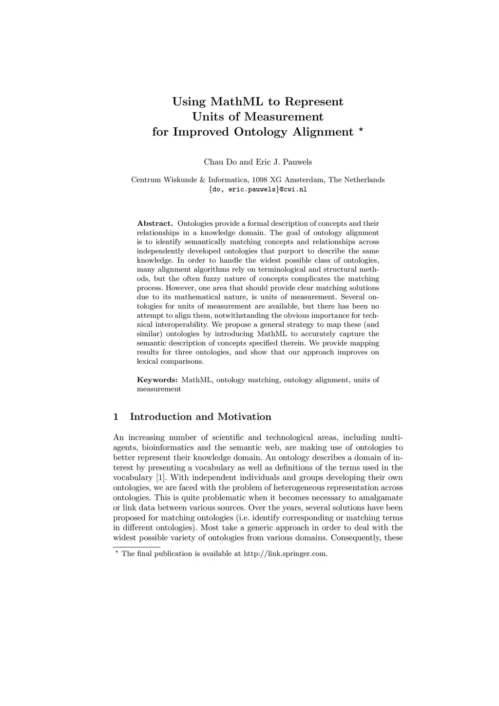 Using MathML to Represent Units of Measurement for Improved Ontology