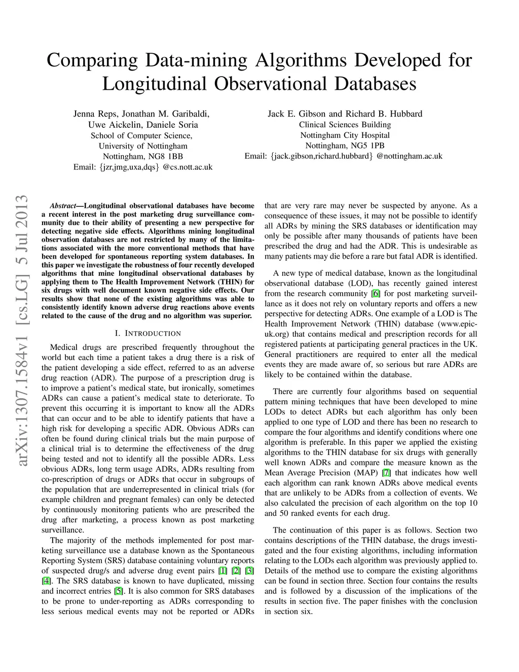 Longitudinal observational databases have become a recent interest in the post marketing drug surveillance community due to their ability of presenting a new perspective for detecting negative side effects. Algorithms mining longitudinal observation databases are not restricted by many of the limitations associated with the more conventional methods that have been developed for spontaneous reporting system databases. In this paper we investigate the robustness of four recently developed algorithms that mine longitudinal observational databases by applying them to The Health Improvement Network (THIN) for six drugs with well document known negative side effects. Our results show that none of the existing algorithms was able to consistently identify known adverse drug reactions above events related to the cause of the drug and no algorithm was superior.