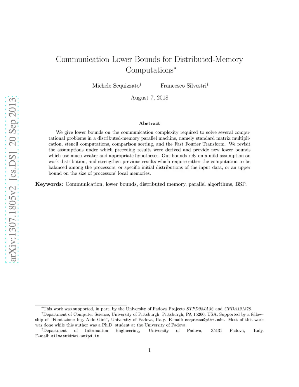 Communication Lower Bounds for Distributed-Memory Computations