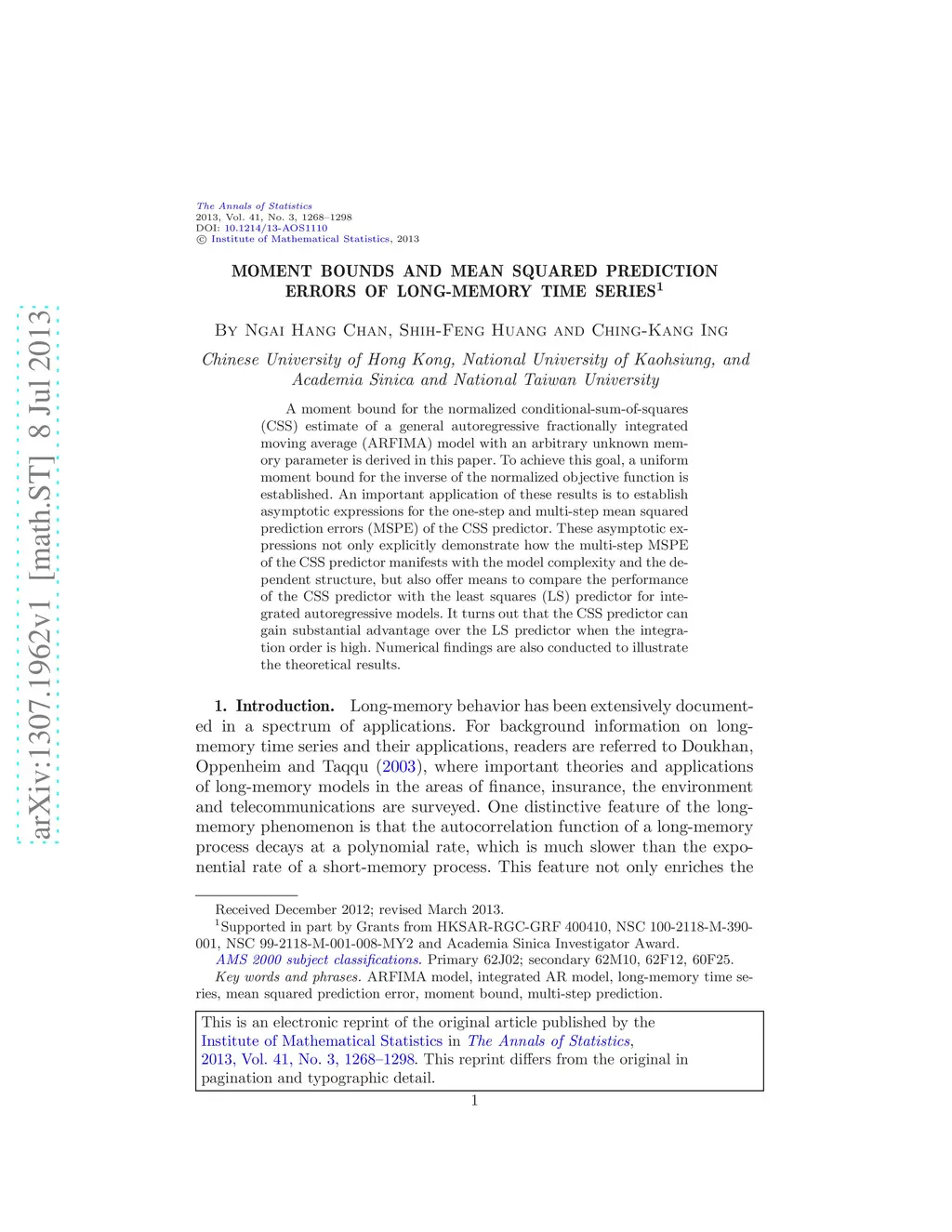 Moment bounds and mean squared prediction errors of long-memory time
